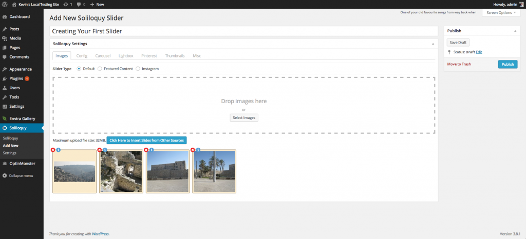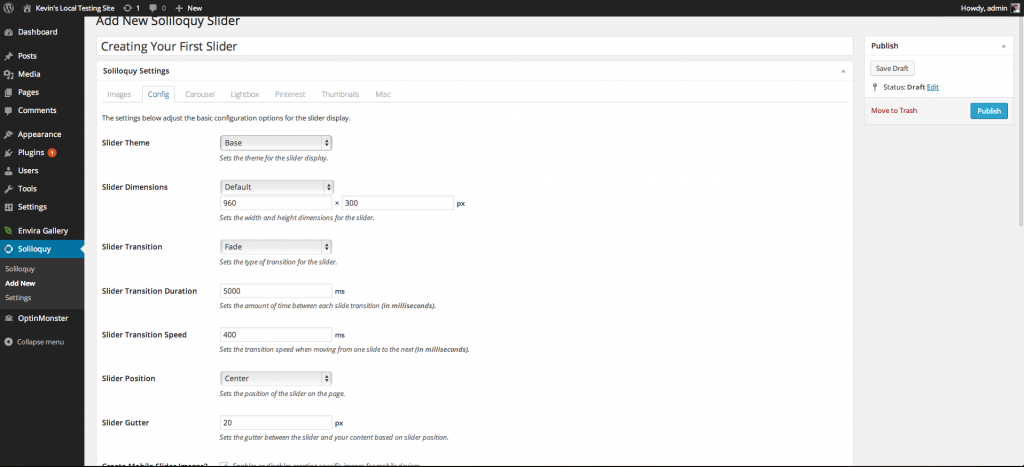 Exciting times – you are about to create your first slider with Soliloquy! Here we will go through a general rundown of all of the available things you can do with your slider when creating it. Don’t let the length of this piece scare you – it is super easy to create a new slider with Soliloquy. I’m just listing out all the details so that you can learn everything about Soliloquy on your first try. Let’s get started!